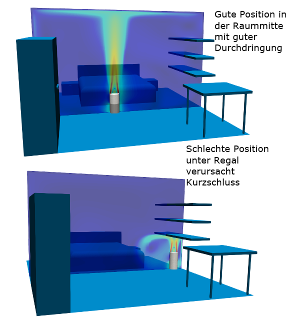 Vor dem Hintergrund der Eindämmung der Ausbreitung des Coronavirus werden zunehmend Raumreiniger eingesetzt, um die Viruslast in Räumen zu reduzieren. Es ist jedoch unklar, wo der Reiniger in einem bestimmten Raum am besten platziert werden sollte, um das beste Reinigungsergebnis zu erzielen.